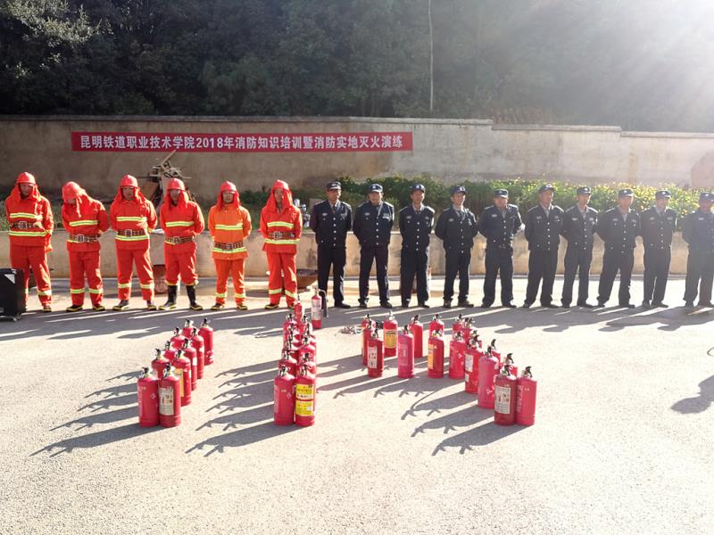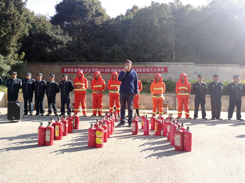 为认真落实云南省教育厅、昆明市教育局“关于认真开展消防安全教育培训和组织消防灭火演练的通知”精神,进一步落实公安消防机关对重点单位消防工作的要求,不断完善《昆明铁道职业学院消防安全管理办法》,推进学院的消防管理,全面预防火灾事故的发生,提高全院师生的安全防火意识和处置火灾的应变能力,在第26个消防日来临之际,结合今年“119消防宣传月”活动要求,学院保卫处于18119日上午组织开展消防知识培训暨实地灭火演练。
