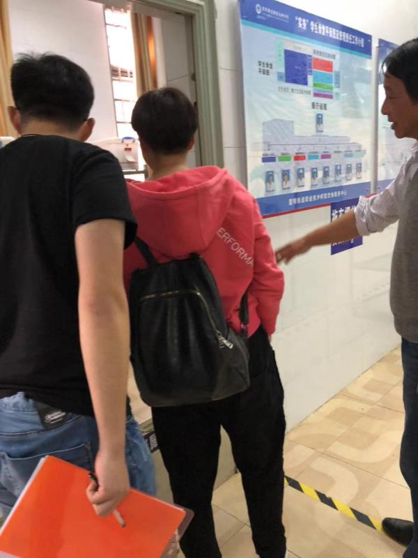 检查组一行不辞辛劳(我院是当天检查的第八家单位),一到学院就投入紧张的检查中……一行人分成几个小组,先后对学院南北院门卫保安室、视频监控中心、消防控制室、微型消防站、校园消防设施、校园交通设施、停车场、北院学生公寓、北院食堂管理及食品安全管理进行了实地检查和察看。