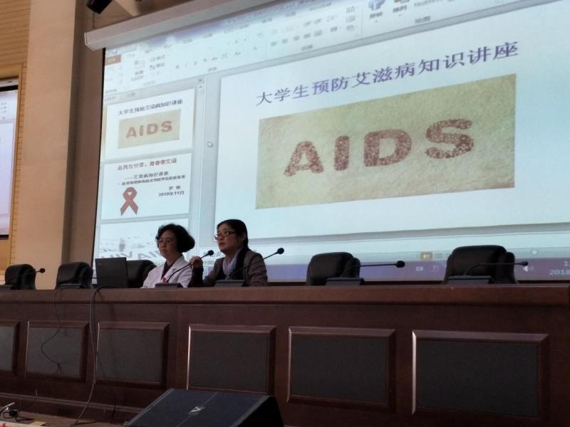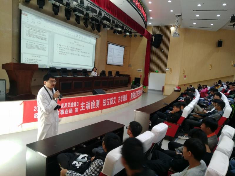 讲座由学院学生处副处长赵蕊老师主持,学生处医务室罗琼医生主讲、官渡区阿拉乡中医骨科医院的线路医生等医护人员也参加了本次活动,给学生发放了艾滋病宣传活动手册、答题小礼品及进行了签名活动。