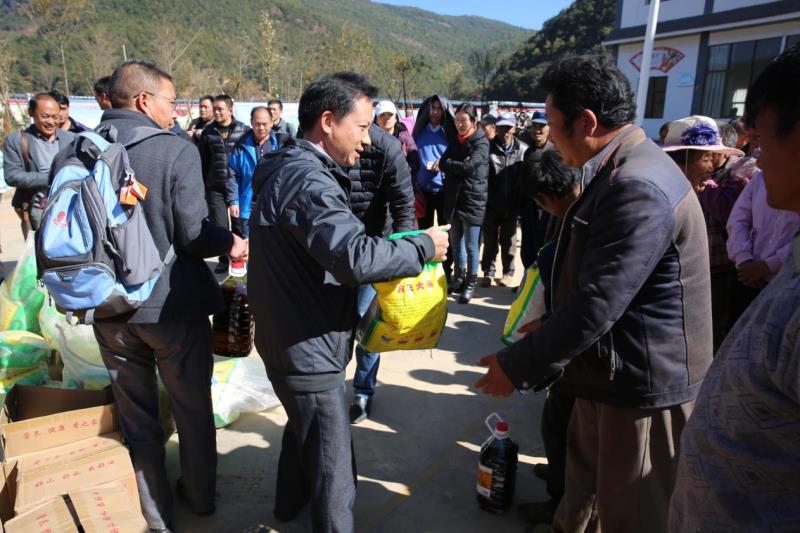 座谈后,“挂包帮”扶有关成员为贫困户发放了大米和食用油,希望困难群众能够坚定信心,争取早日脱贫。活动现场其乐融融,充满了欢声笑语,每一个群众都用他们最美的笑容表达了对党和学院的感激之情。