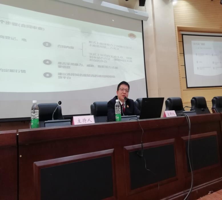 本次讲座,郭军民检察官从三个部分给同学们娓娓道来。第一个部分:什么是校园贷。本节给同学们介绍了什么是校园贷,非法校园贷的特征、陷入不良校园贷的原因和非法校园贷的惯用伎俩等。随着网贷的兴起,校园贷逐渐成为了社会焦点的一个重点话题,讲座过程中,郭军民检察官从近年来发生的多起“校园贷”恶性典型案件切入,以此来提醒同学们要“理性消费,树立正确的消费观,远离滥贷,警惕风险”。第二个部分:非法校园贷的危害。郭军民检察官从什么是“套路贷”入手,剖析“套路贷”的基本特点,深挖大学生陷入“套路贷”的原因,生动的还原了“套路贷”成因。