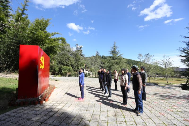 青山碧空、苍松翠柏,把位于蒙自市芷村镇查尼皮村的中共云南一大会址纪念馆映衬得格外幽静,肃穆神圣。12日上午,在讲解员的带领下,支部党员拾阶而上,沿途不时驻足,通过耸立在一旁的一座座石碑,了解中共云南一大召开的历史背景。面对中共云南一大会址文化浮雕墙以及革命历史图片和实物,大家仿佛回到了过往雄壮豪迈的红色岁月。走进当年举行中共云南一大会议的小茅草屋,看着屋内简陋的桌椅,发黑的墙壁,一盏仿佛还在发光的小马灯时,革命先驱的豪迈誓言仿佛响彻在耳。随后,在支委刘影老师领誓下,大家面对党旗庄重的举起右手,郑重的重温入党誓词。
