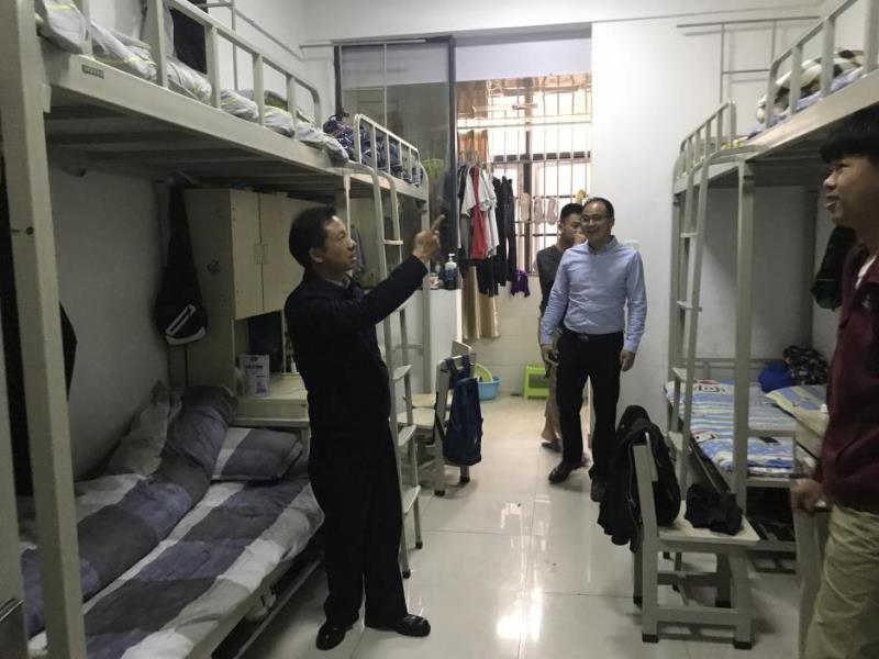 在宿舍值班处,张志宏书记查阅了宿舍值班记录本,对宿舍卫生标准、学生用电安全,住宿安全作了详细的了解,同时,边检查边督促宿舍管理人员一定要与班主任、辅导员加强沟通交流,发挥教育合力,多关爱学生,了解学生疾苦和冷暖,引导学生培养良好的生活习惯。
