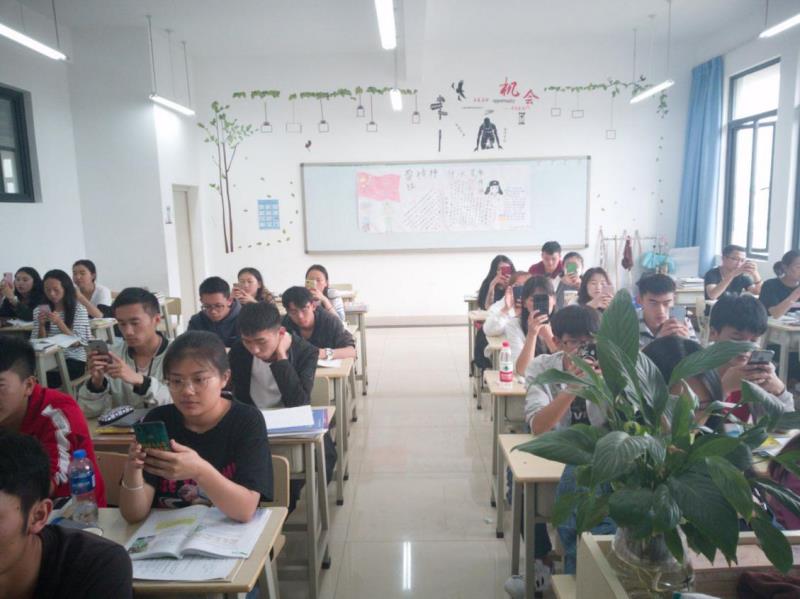 铁道运输系组织系部学生在手机上观看纪念五四运动100周年大会直播