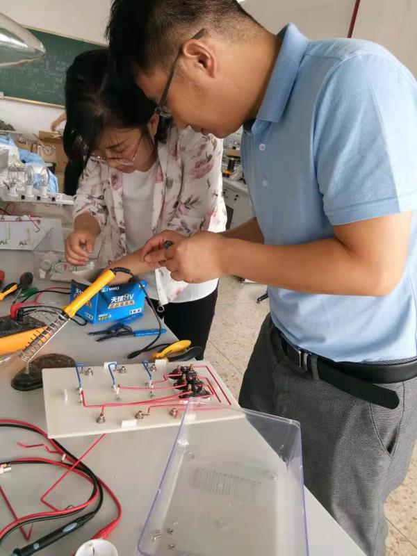 为了满足秋季学期电工实验的正常开展,杨宏翔老师和罗峰老师带领电工电子教研室全体老师维修实训设备。大家认真研究电路原理,讨论故障可能原因,不断排查,并尝试购买电子元件替换维修。整个维修过程下来,经过动手、动脑,不仅夯实了大家的理论基础,强化了大家电路设备维修的能力,专业技能有了较强的锻炼。维修好了部分设备,保证了秋季学期电工课的实验开出率,也为学院专业建设和人才培养的进一步发展提供了坚实的保障。