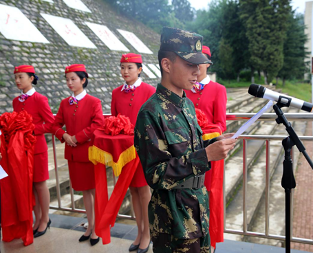 胸带大红花,点击国防情,粘贴青春志,刷新成才路,共享强军梦。