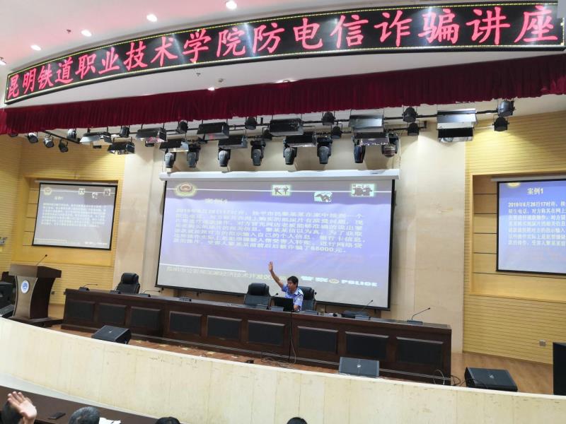 9月12日下午,昆明铁道职业技术学院学生处、保卫处联合举办“2019年防电信网络诈骗安全知识专题讲座”。讲座邀请昆明市公安局国家经济技术开发区分局法制办警官闫文赋主讲。阿拉派出所卢?;愿彼?、片区民警及我院机车车辆系、电气工程系、铁道运输系、机电工程系460余名师生参加讲座,讲座由学生处处长李徕主持。