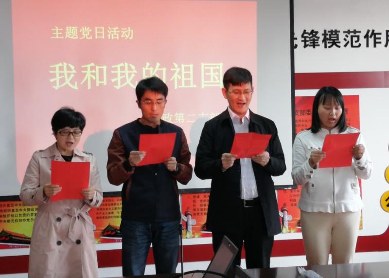曾志民同志和刘继红同志真情诵读《党啊,亲爱的妈妈》;廖宗敏同志经过精心准备,心潮澎湃地为大家朗诵《我在一颗石榴里看见了我的祖国》;艾芳同志、李红同志和李霞同志分别对党深情告白《党啊,亲爱的妈妈》;余丽芳同志感情真挚地朗诵了《我是中国人》;陈光寿同志热情激昂地为大家诵读了《党的颂歌》;最后,由邹建斌同志、李奎同志、何伟同志和罗燕同志共同声情并茂地朗诵了《祖国》。