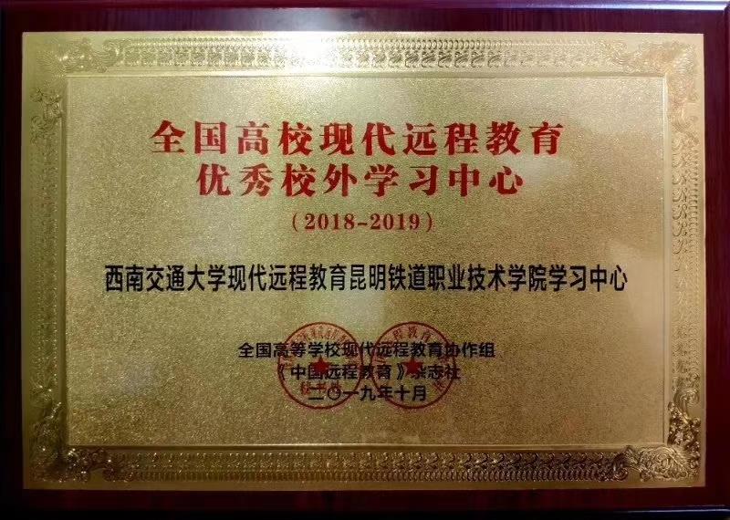 2019年第十八届中国远程教育大会在北京盛大召开。西南交通大学现代远程教育昆明铁道职业技术学院学习中心荣获“全国高校现代远程教育优秀校外学习中心”称号。
