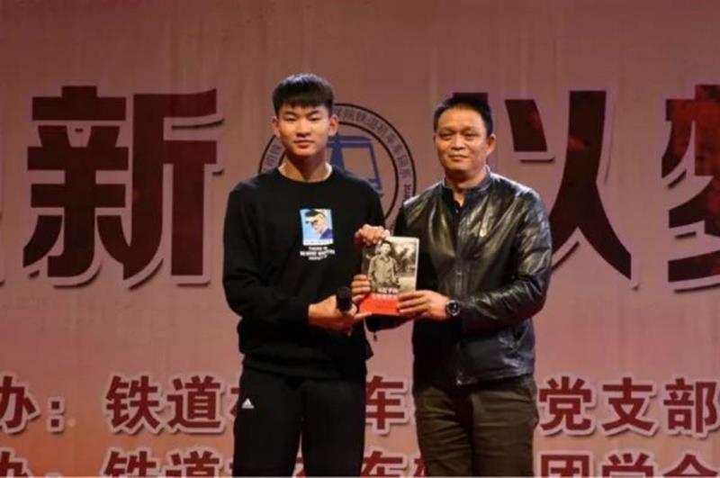 希望青年学子做一名有责任感的新时代青年。铁道机车车辆系2017级城轨车辆3班奎志和陈鸿浩宇根据自己学习与成长经历,谱写了歌曲《18岁》,用歌声表达18岁少年的心声,18岁代表着成年、代表着责任与担当,代表着人生进入一个新的阶段。当天恰逢铁道机车车辆系2018级城轨车辆3班张博的18岁生日,在场的所有老师和同学为张博同学表达生日的祝福,学院党委副书记张学云向张博同学赠送《习近平的七年知青岁月》一书,并希望所有同学在大学期间做好每一件小事,扣好人生的每一粒“扣子”,争做有理想、有担当和有责任感的新时代青年。