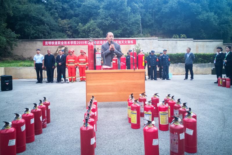 为认真贯彻落实云南省教育厅、昆明市教育体育局“关于认真开展“119消防宣传月”系列活动的通知精神。进一步提升师生消防安全意识和应急技能,不断推进学院的消防安全管理,全面预防火灾事故的发生,在第二十七个“119消防宣传日”到来之际,11月8上午,学院举办2019年消防知识培训暨实地灭火演练活动。