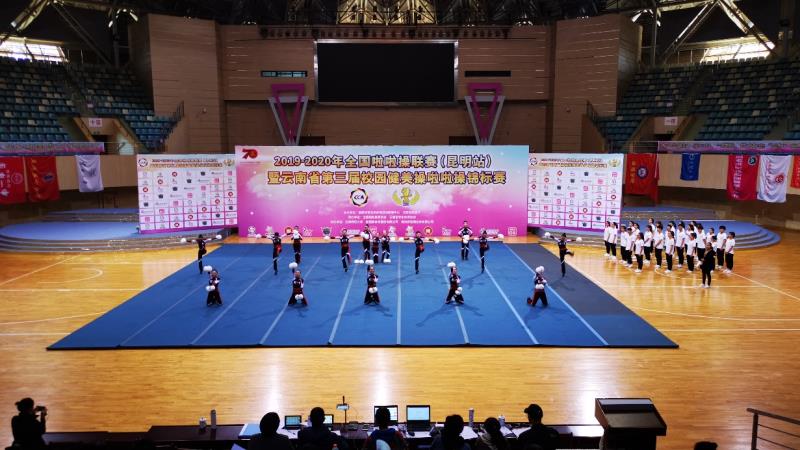 2019-2020年全国啦啦操联赛(昆明站)暨云南省第三届校园健美操啦啦操锦标赛于1115-17日在云南师范大学呈贡校区隆重举行。本次比赛共有160支队伍近4000名运动员参加,比赛由国家体育总局体操运动管理中心、云南省教育厅主办,全国啦啦操委员会、云南省学生体育协会承办,云南师范大学、新恒鼎体育股份有限公司、南京新恒鼎会务有限公司协办。