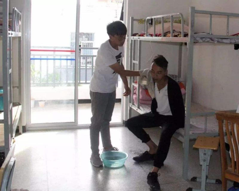 每天早上,吴建智洗漱完毕后,就忙着帮哥哥穿衣,端水给哥哥洗漱;放学后,又忙着去食堂打饭菜照顾哥哥吃完,然后再清洗餐具;晚上,照料哥哥睡下后自己方才去洗漱。他总是寝室里第一个起床,但却是最后一个睡下的人。八年以来他就这样不间断的重复着。因为骨肉亲情早已随着岁月的递进而深入骨髓,情深不移。