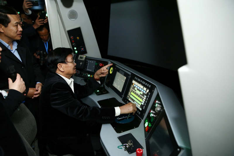 通伦总理一行考察了学院铁路和城市轨道综合实训场所,听取了学院铁路技术技能人才培养中理论和实训课程的开设情况,特别是对学院如何充分发挥专业优势培养老挝铁路技术技能人才进行了全面了解。在城市轨道实训室,通伦总理饶有兴趣地进行了地铁模拟驾驶。