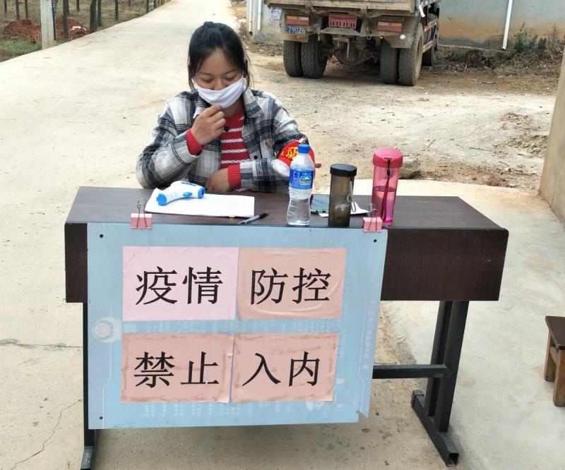 2018级高铁乘务的杨求凤同学,参加剑川县疫情防控青年突击队,配合领导干部做好疫情防控工作,对村庄返乡人员及时上报进行备案登记并进行实时监控和体温测量,对非本村人员做好登记和体温测量。