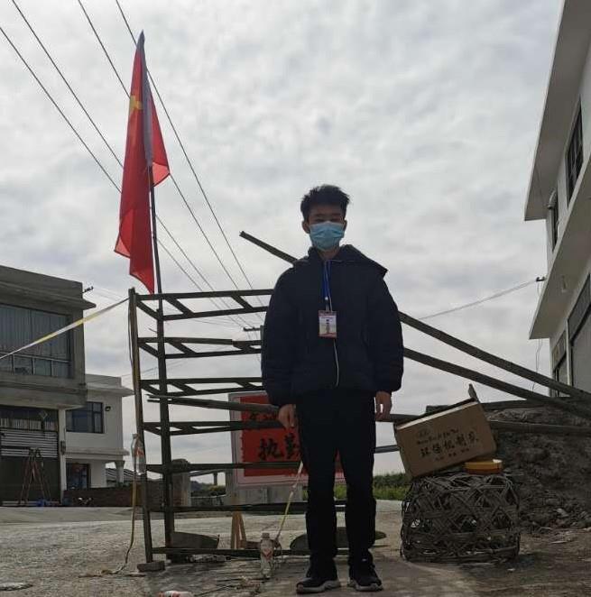 2018高铁乘务的唐湘同学,积极响应勤丰镇疫情防控志愿者服务活动,到所在地村委会报名,配合村委会负责人,开展“勤丰镇高楼村委会新型冠状病毒疫情防控”工作,每天在卡点处帮忙登记进出人员信息、来源地区及进出村事由和测量体温,提醒村民佩戴口罩。