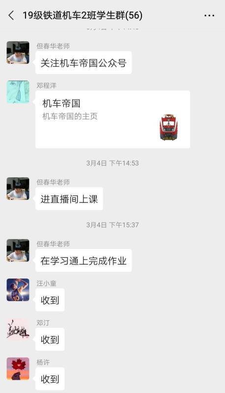 网络学习让课堂从一个地方转向了另一个地方,它不只是知识的传播和储存,还有良好的互动学习氛围。师生互动、在线答疑、主题讨论使得协同学习和自主学习相得益彰。在两个月的网络教学中,铁道机车车辆系全体教师发扬勤学好问的学习精神,相互帮助,所有老师教学都采用视频直播和相关软件辅助教学,这次“停课不停学”的实践,将使得我系老师自媒体教学能力有一个质的飞跃。老师们,你们棒棒的!