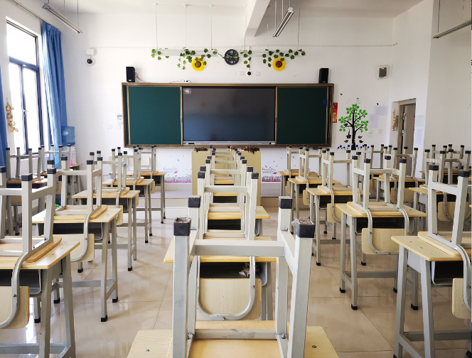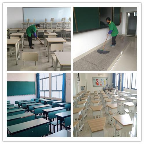 为了让你们安心学习,有个美好的环境。保洁部的工作人员已经把教室打扫得窗明几净,干净整洁,认真消毒,不留任何死角。
