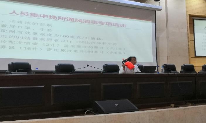 (二)学生返校第二天(5月11日、5月19日)下午分两批次对19级(112人次)、18级(101人次)各班班干部开展传染病防控人员集中场所通风、消毒制度,台账建立、消毒技术技能及红外线体温计使用专项培训,先后共213名班干部参加培训。