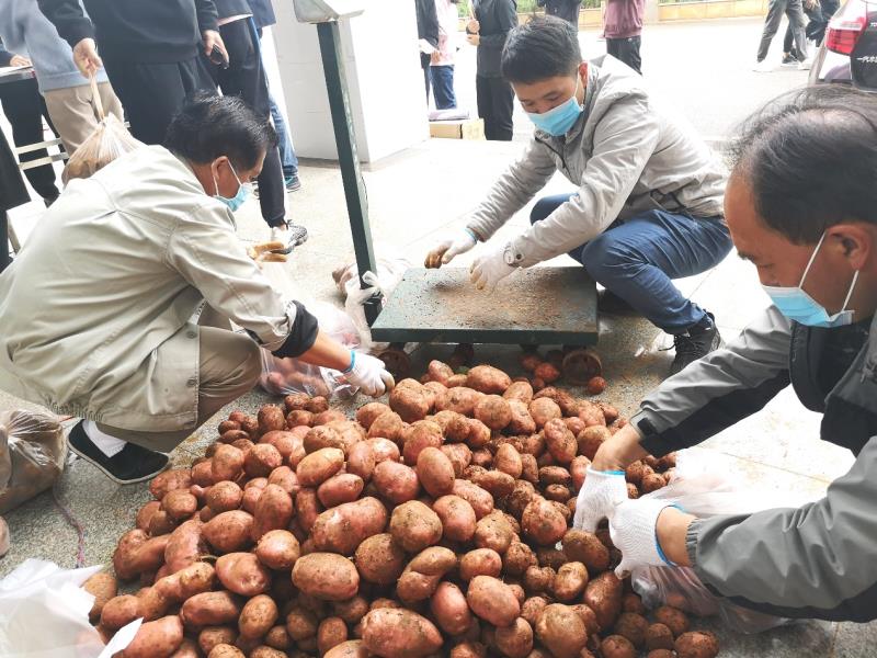 5月28日中午,“爱心洋芋”消费扶贫活动如期开展,教师们纷纷排队踊跃购买。此次学院共向寻甸县甸沙乡农户收购4.3吨洋芋,在全院教职工的共同参与下,不到半小时,“爱心洋芋”全部售罄。