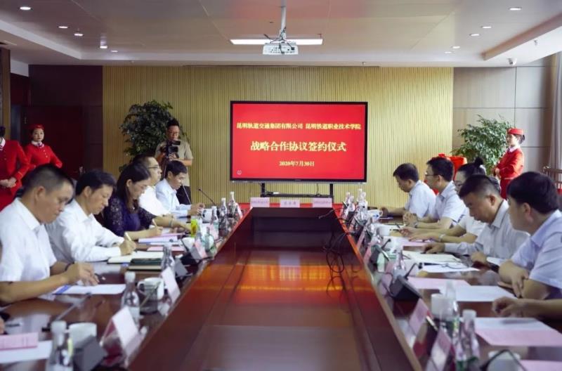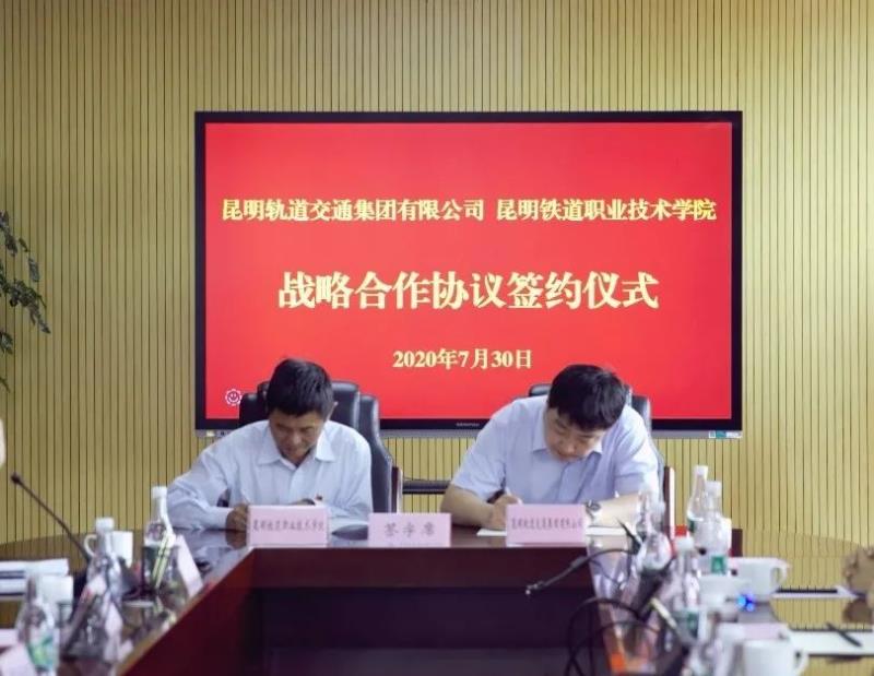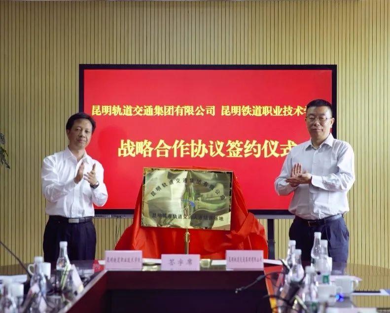 昆明轨道交通集团有限公司党委书记、董事长宗庆生与昆明铁道职业技术学院党委书记张志宏共同为“昆明城市轨道交通人才培养基地”揭牌。昆明轨道交通集团有限公司副总经理孟帅与昆明铁道职业技术学院副院长邓正均签署了《昆明轨道交通集团有限公司 昆明铁道职业技术学院战略合作协议》。
