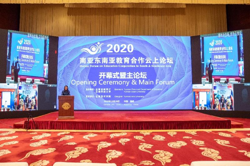 10月20日上午,2020年南亚东南亚教育合作云上论坛在海埂会堂开幕,本次论坛以“守望相助、携手同行”为主题,目的是充分发挥云南面向南亚东南亚开发的区位优势开展教育国际交流合作,在全球共同抗疫的特殊时期,联合世界各国,特别是南亚东南亚国家教育部门和教育工作者共同研究教育交流面临的问题,探索开展教育合作的最佳模式和途径,互相帮助解决实际困难,推进双边和多边务实合作,实现携手同行,共克时艰、共同发展。