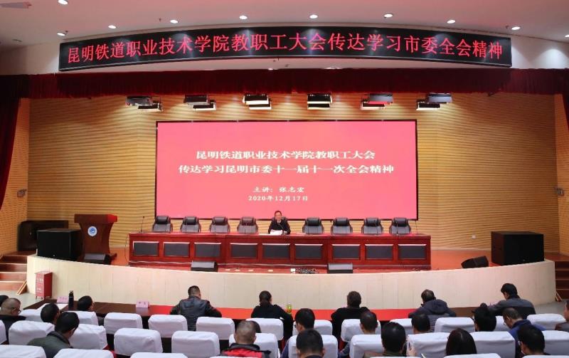 12月17日,学院召开全体教职工大会,学院党委书记张志宏主持会议并传达学习市委十一届十一次全会精神,部署贯彻落实要求。