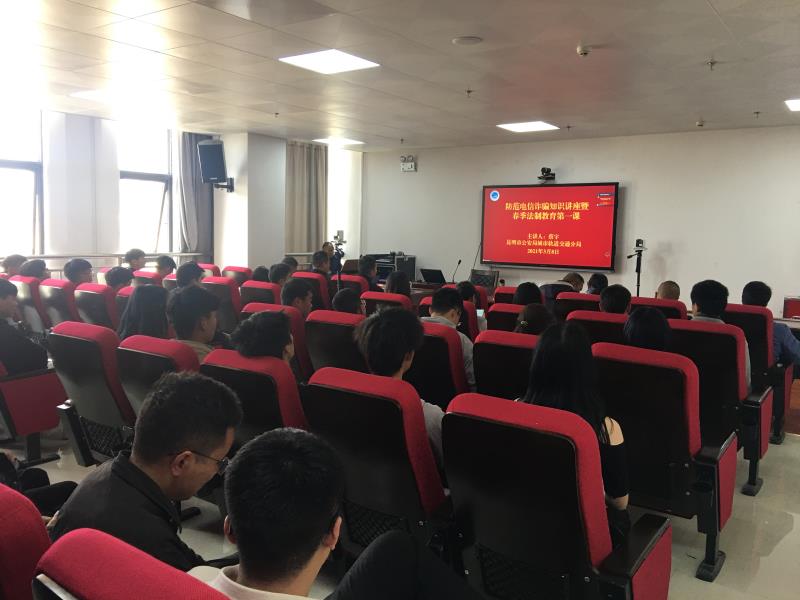 202138日,学院邀请昆明轨道公安分局行政中心站派出所副所长蔡宇警官到校进行“防范电信诈骗知识讲座暨春季法制教育第一课”专题教育讲座。本次讲座是采取视频直播的方式进行,保卫处、学生处,各二级学院负责人、辅导员、教师、羊甫校区、全体学生、保安共计4173余人参加讲座,本次讲座设主会场1个,分会场72个。