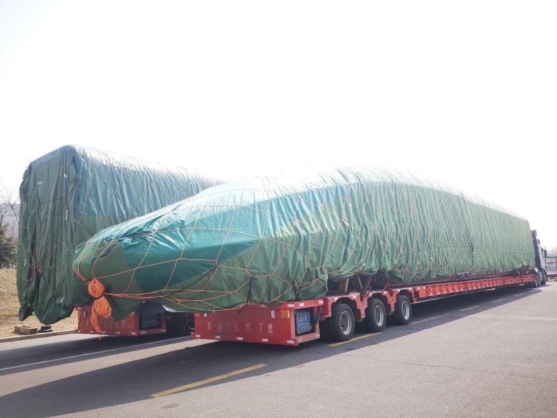 之后,工作人员给车体穿上“防护服”,并披上绿色的车衣,最后使用防护网进行固定。下午,工作人员完成四台转向架和其他零部件的吊装。至此,学院高速动车组教学用车完成起运准备。