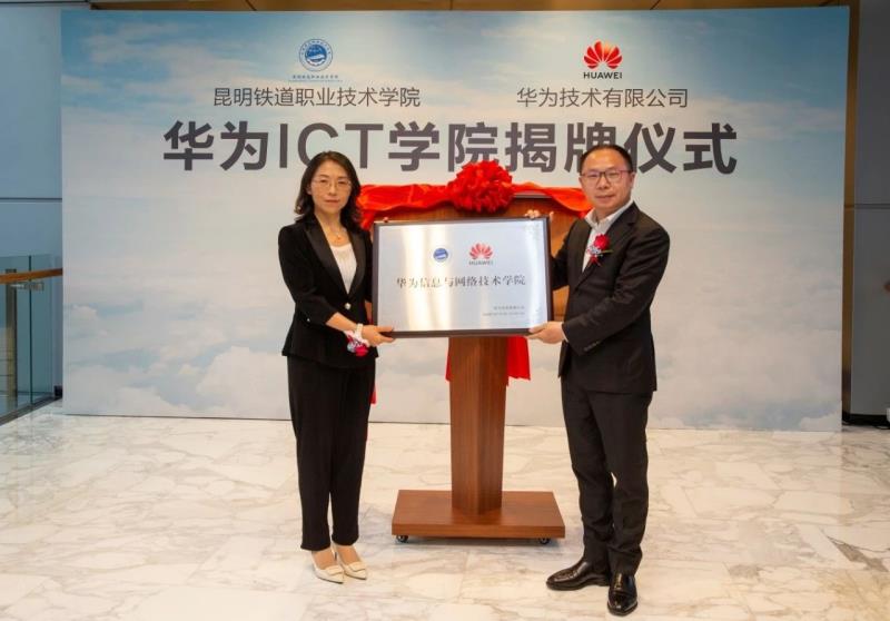5月6日,昆明铁道职业技术学院“华为ICT学院”揭牌仪式在深圳华为技术有限公司总部大楼举行,李瑞林校长和华为技术有限公司中国政企教育高校系统部游奎武部长共同为“昆明铁道职业技术学院华为ICT学院”揭牌,标志学校与华为的校企合作进入到全新的发展阶段。