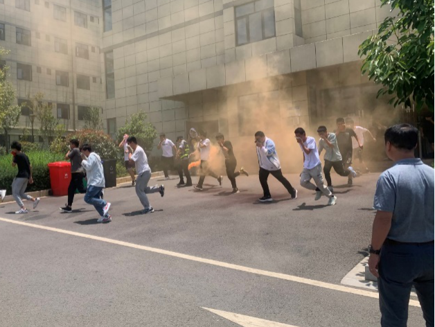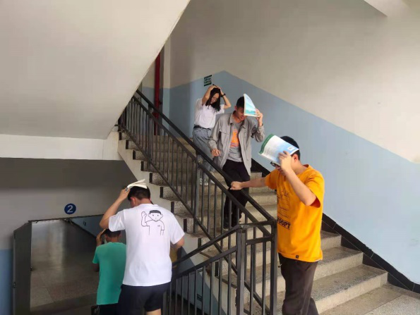 此次演练分为地震避震和逃生演练与火灾逃生演练。通过实际模拟应急疏散演练,从而进一步增强了同学们的防灾意识。地震避震和逃生演练中,同学们双手抱头,?;ぷ约旱耐凡堪踩?,及时有序地按照安全逃生路线疏散。在规定时间内,全体师生安全疏散到安全位置。