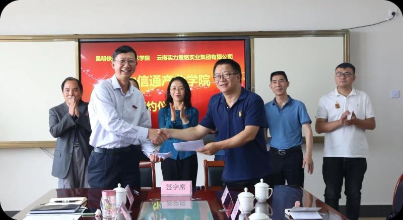 5月20日,我校与云南实力集团慧铭教育管理有限公司共建实力通信产业学院签约仪式在羊甫校区举行。校长李瑞林、副校长尹光,云南实力慧铭实业执行董事余文林、总经理刘彬及双方职能部门负责人参加仪式。