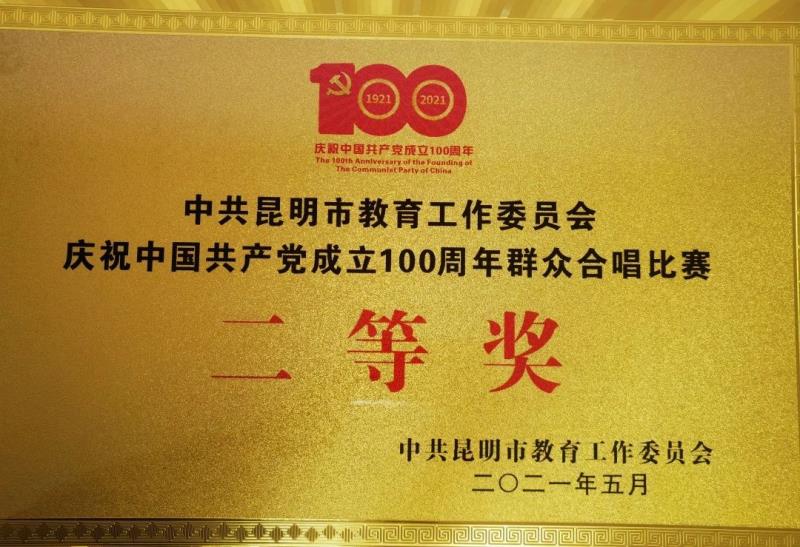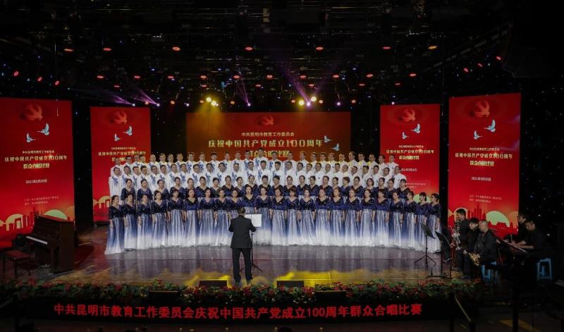 为庆祝中国共产党成立100周年,引导全校师生厚植爱党爱国爱社会主义的情感,不断在党史学习教育中汲取成长营养,继承和发扬党的光荣传统和优良作风,充分展示学校师生昂扬向上的精神风貌,激发和凝聚全校师生爱党、爱国、爱校热情,立足本职做贡献,我校组织百人合唱团,分别于528日、530日参加昆明市经开区、昆明市委教育工委举行的庆祝中国共产党成立100周年群众合唱比赛,并荣获优秀组织奖、二等奖的优异成绩。