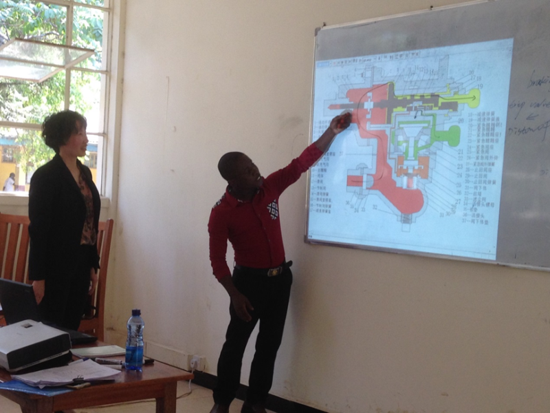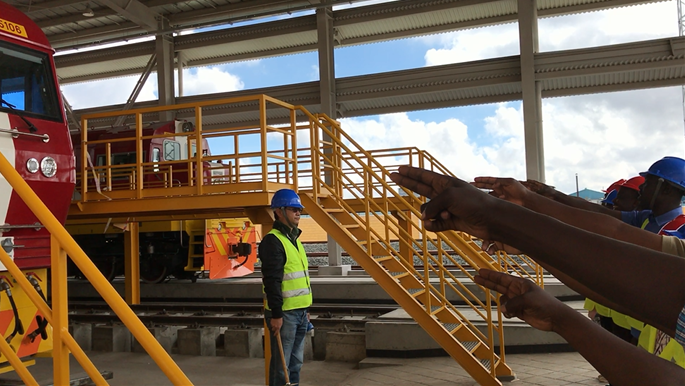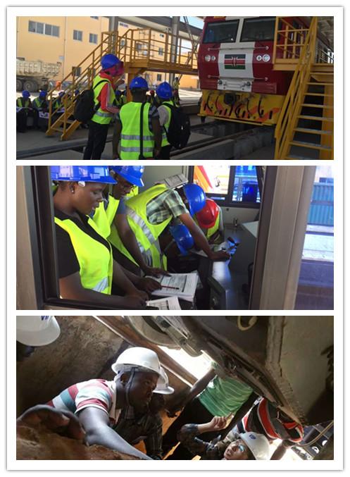 昆明铁道职业技术学院为了参与蒙内铁路第二期的培训任务竞标,同时提升教师涉外培训教学能力及提高学院的国际影响力,2016年5月底,编制了肯尼亚蒙内铁路机车检修、机车运用、桥隧工、线路工四个工种的培训方案, 2016年7月中旬,西南交通大学远程与继续教育学院国际部确定昆明铁道职业技术学院中标,承?;翟擞谩⒒导煨夼嘌等挝?,先期开展机车运用专业1个班培训工作。学院随即开展援外教师选拔,并进行相应的援外授课教师培训工作。2016年10月13日,首批培训专家团队出发赴肯,开展机务(副司机)培训教学工作,并于2017年4月11日顺利完成教学任务,总计培训时长6个月。2017年3月2日,我院第二批培训专家团队抵达肯尼亚,开展机务(机车维修)培训教学工作,6月3日结束教学任务,该班总计培训时长3个月。为确保援外培训质量,学院采取每个专业工种配备四名专业教师和一名翻译教师的方式组织培训教学,共计派出袁媛、陈崇贤、马力、李秀玲、郑晓燕、赵平六位经验丰富的教师赴肯尼亚任教。由于我院援外教学团队培训成绩突出,得到了中国路桥公司和西南交通大学高度赞扬??夏嵫恰斗侵拗芸芳啊吨泄毡ā?、中央电视台等官方媒体对我院援外教师李秀玲老师进行了专访。在出色完成任务的同时,老师用相机记录下了他们在肯尼亚工作、生活的精彩瞬间,征得同意,学院予以编发,以飨读者。