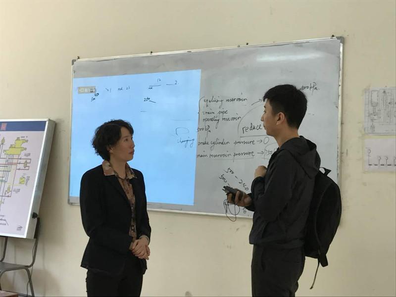 援外教师在东风8内燃机车驾驶室和机器间上课