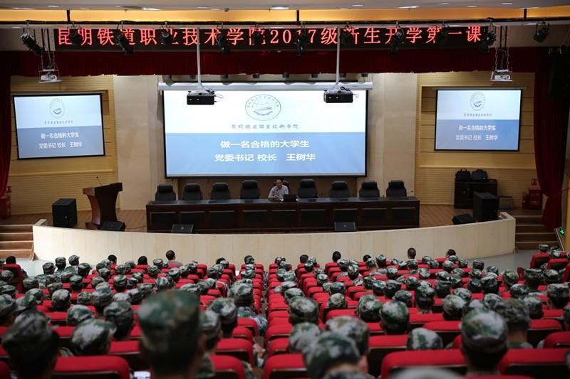 “希望同学们自入学之日起就能把昆明铁道职业技术学院当做创造人生价值的新开端,创造幸福人生的新领地,开启智慧宝库的加油站!在这里,学习的是知识,训练的是技能,塑造的是精神!