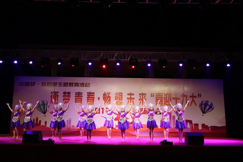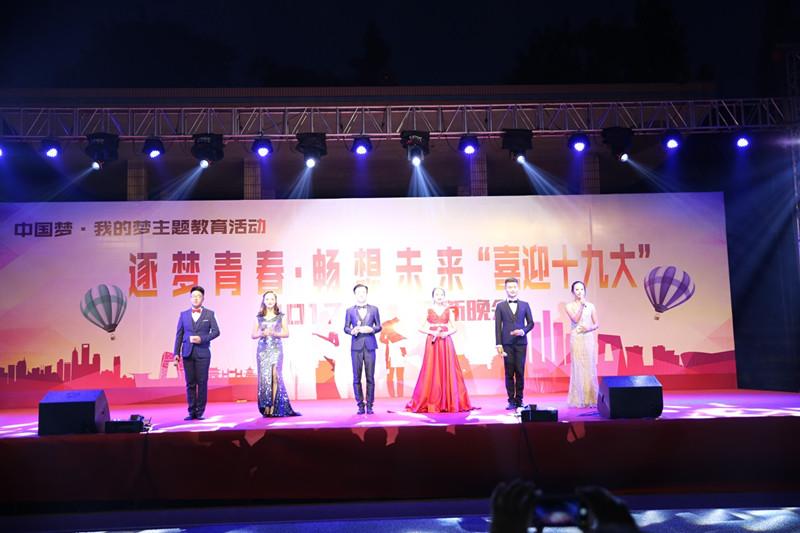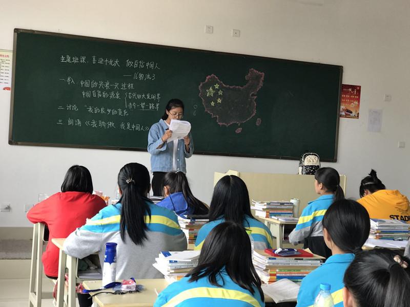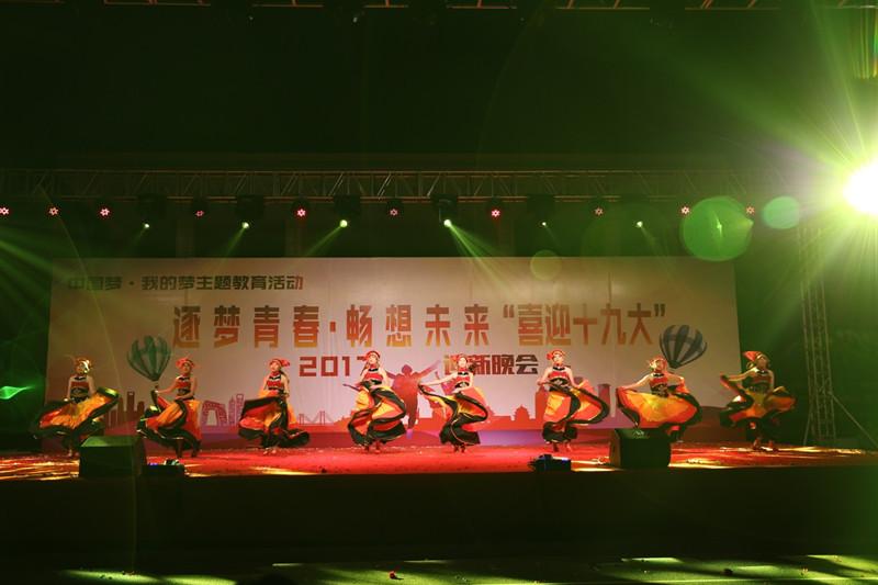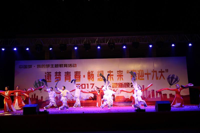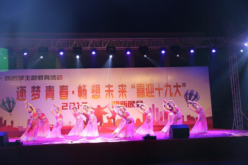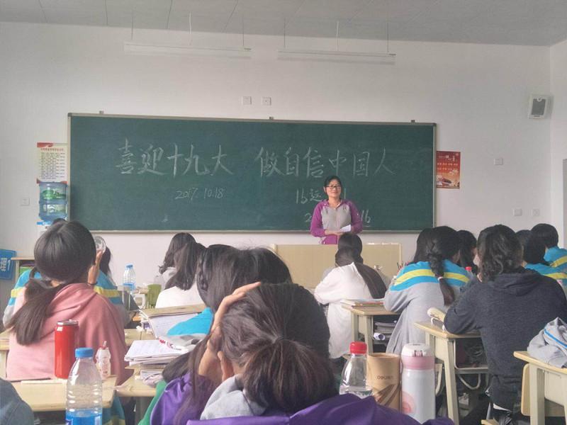 我??沽恕跋灿糯?,做自信中国人”的主题班课。同时还举办了“筑梦青春,畅想未来,喜迎十九大”的迎新生文艺晚会,全校师生欢聚一堂,以精彩的节目表演,喜迎十九大。