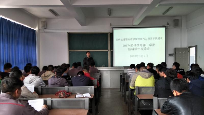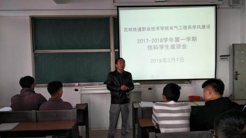 帮助学习困难学生适应大学生活,了解学生学业情况,做好大学生学业指导是学生工作的一项重要工作。为加强我系学风建设,做好学生学业分析与预警工作,我系于2018年3月7日、8日下午15:50~16:30在教学楼301教室召开了2017-2018学年第一学期16、17级挂科学生座谈会。系主任邓正均老师、书记赵伟老师、教学秘书赵洪斌老师、供电教研室主任谢芸老师、辅导员李飞老师、张羽寰老师参加了此次座谈会。