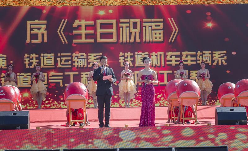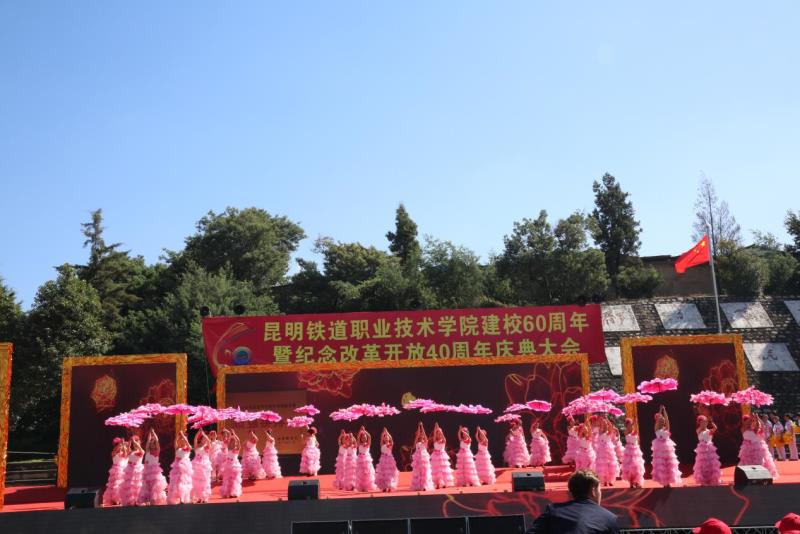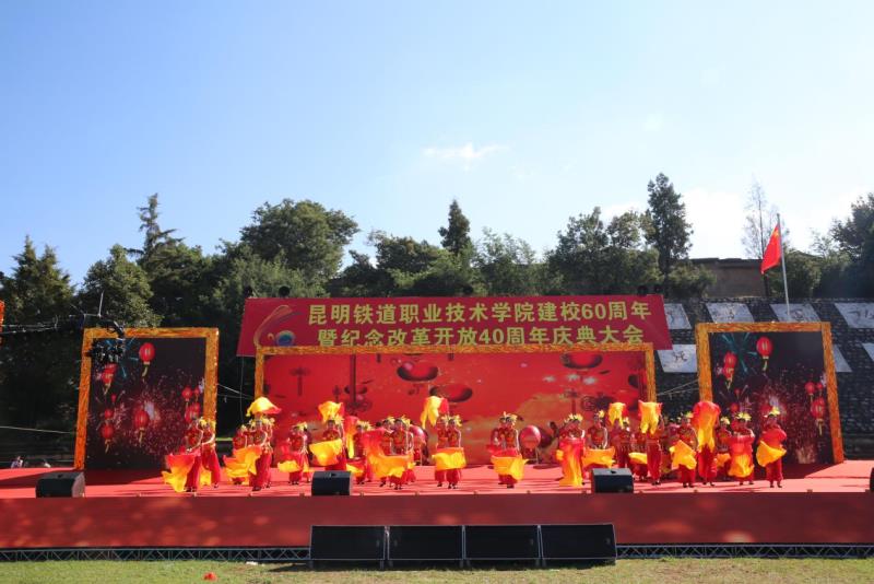 随后,学院举行了建校60周年庆典暨庆祝改革开放40周年文艺演出。文艺汇演形式多样,内容丰富,演出分开拓篇—扬帆起航、奋进篇—崭新时代、展望篇—美好明天共三个篇章,分别由《生日祝?!贰豆馊倜蜗搿贰短兰沽骸贰短耙艋贰对薷柘赘霸骸贰肚啻翰魑易鲋鳌贰段蠢粗琛贰短核谈琛?/span>8个精彩节目。参加文艺演出主要是昆明铁道职业技术学院青年教师代表和铁道机车车辆系、铁道运输系、铁道电气工程系、机电工程系的学生,还特邀了兄弟院校云南交通职业技术学院、合作企业昆明地铁运营有限公司参加了演出。演出类型包括情景音诗画、男子群舞、团体啦啦操展演、音乐舞蹈快板等。