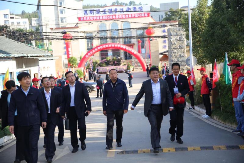 昆明市政协副主席、市教育党工委副书记、市教育局党组书记、局长刘绍安在讲话中指出,昆明铁道职业技术学院六十年的办学历史和今天取得的成绩,是在党的领导下坚持改革开放,各项事业蓬勃发展,人民生活不断改善的生动体现,也充分展示了学院代代传承、薪火相继的奋斗历程,彰显了广大教职工呕心沥血、教书育人的高尚师德,抒写了莘莘学子求学苦读、回报社会的赤子情怀。六十年来,昆明铁道职业技术学院始终贯彻党的教育方针,坚持正确办学方向,为党和人民、为铁路和城市轨道交通发展培养了一大批优秀的技术技能人才。希望昆明铁道职业技术学院以六十年校庆为新的历史起点,全面贯彻落实习近平新时代中国特色社会主义思想和党的十九大精神,勇于担当时代使命,全面落实立德树人根本任务,再接再厉,主动融入和服务国家“一带一路”建设,为铁路发展和高等职业教育做出更新更大的贡献!