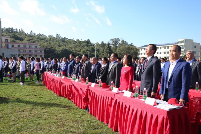 2018年10月18日上午,风高气爽、艳阳高照,昆明铁道职业技术学院校园内彩旗迎展,欢声笑语,志愿者们一早就位,迎候返校校友共同庆祝母校生日,隆重举行建校60周年暨庆祝改革开放40周年庆典活动。庆典活动开始前,全体起立,奏唱国歌。