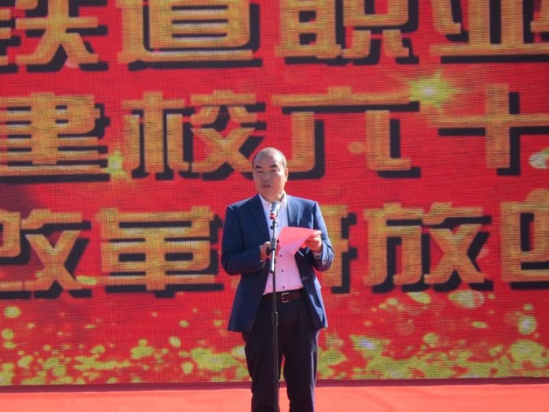 昆明铁道职业技术学院党委副书记、院长李瑞林致辞。李瑞林表示,正是一代代昆铁人忠诚教育、献身铁路、志如磬石的坚强毅力,成就了昆明铁道职业技术学院今天的辉煌。目前,学院构建了“铁道机车车辆、铁道电气工程、铁道运输和机电工程”四个专业群,开办15个铁道和城市轨道交通专业。现有由38个实验实训室和车间组成的城市轨道交通、铁道机车车辆、铁道运输8个实训基地(中心)。目前,已获批立项列入省教育卫生补短板的总投资3.7亿元的基础设施和实习实训基地建设项目,正分期实施,将投资2亿元,建设立足云南、面向西南、辐射南亚东南亚铁路沿线国家的融生产实训、培训、职业技能鉴定和技术研发等功能一体的高起点、综合性、在全国具有领先优势的云南高速铁路技术公共实训基地。