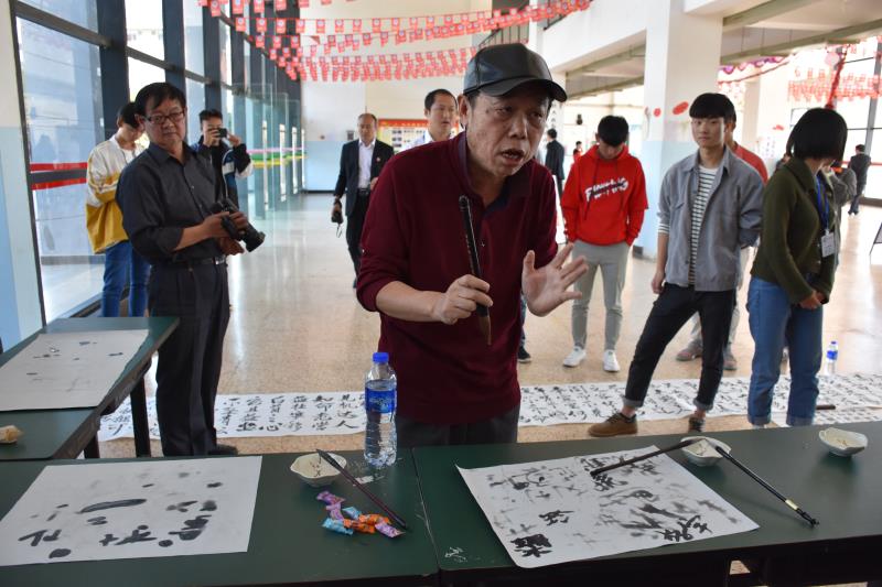 王弘毅教授也参与到了其中。他为大家讲解了书法的奥妙和精髓,一件好的书法作品,包含了很多东西,要用语言把它描述出来,实在太难。好的书法作品需要用心去品味 。书法艺术古老而独特,承载了中国传统文化的内涵,表现了我们民族的审美意识,是中华民族聪明才智的集中表现。书法是非常注重承传古典传统的艺术, 其中书法是一大亮点 ,中国书法艺术的魅力,要在长期的练习中形成肌肉模板,不要随意就写出一个字,如果这样就算练一万遍也不能领悟到书法的精髓,书法就是把自己的灵魂融入到字里。同学们积极参与到现场创作书法的活动中也使得其增添了一份色彩。