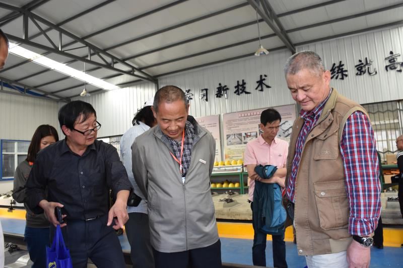 紧接着“长江学者”李芾教授与74级校友一起步行来到我校协作站,参观了协作站里的高速铁路实训场地,好学的同学们向教授提出了在学习专业时的疑问,李教授都一一耐心的解答。
