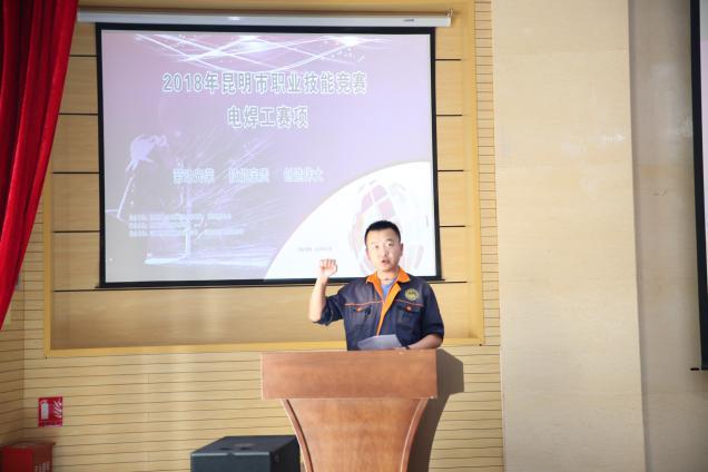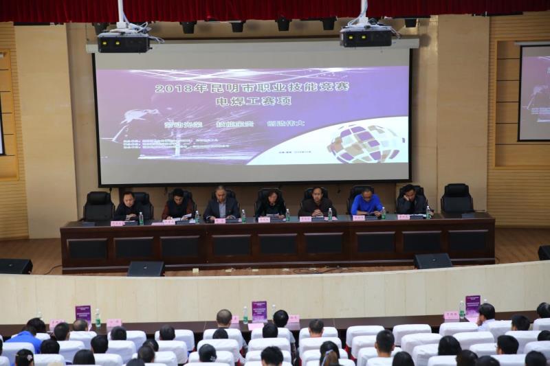 2018年10月26日下午,在学院睿知楼报告厅举行“2018年昆明市职业技能大赛电焊工项目竞赛”开幕式。出席开幕式的领导有昆明市总工会副主席李恪林同志,昆明铁道职业技术学院党委副书记、院长李瑞林同志,昆明铁道职业技术学院工会主席邹建斌同志,昆明地区职工技能提升活动办公室主任张树祥同志,昆明市职业技能鉴定中心倪宝山同志,昆明市职业技能培训中心副主任李加昊同志??皇接裳г旱澄?、副院长谢文同志主持。开幕式开始前,全体起立,奏唱国歌。