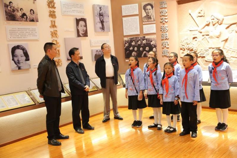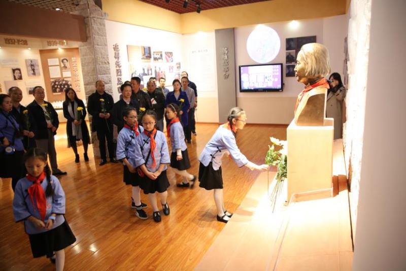 调研组一行来到五华区文林小学,参观了校园新建设的潘琰学堂,通过聆听文林小学小解说员们解说的英雄故事以及诵读纪念诗歌、“穿越”联大教室授课现场、参与爱国主义互动问答、为烈士献花等活动,体验革命年代、交流参观感受、升华学习收获。负责人介绍,潘琰学堂建筑面积121平方米,设有“事迹区、互动区”两大功能区域,室内陈列了潘琰烈士部分珍贵遗物,并以其英雄事迹为主线,配合声、光、电等科技手段,形象、生动地再现了潘琰烈士光辉的一生。