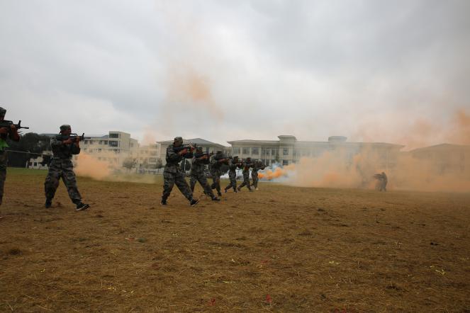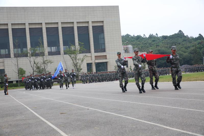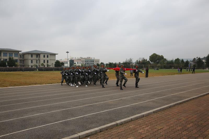伴随着雄壮有力的国歌,军训汇演在庄严的升旗仪式中拉开序幕。首先,军训学员整齐列队,接受了李院长的检阅?!袄鲜谩?、“为人民服务”的声音铿锵有力、响彻操场。随后,他们以严整的军容、规范的动作、嘹亮的口号,精神抖擞地行进经过主席台,赢得了全体师生的阵阵热烈掌声,充分展示了新生军训工作的丰硕成果,展现了当代大学生的风采与活力。