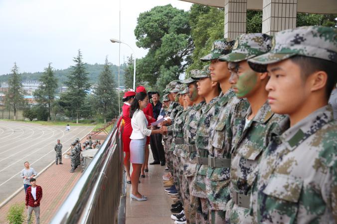 在精彩的汇报表演结束后,学院副院长乔吉祥宣读了军训表彰决定,与会领导为获奖的9个班级“优秀方队”和264名“优秀标兵”代表进行了颁奖。