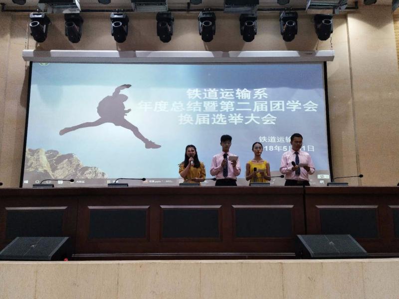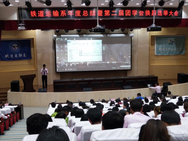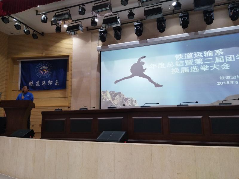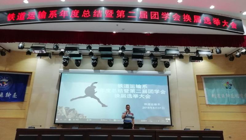 为了更好地开展学生工作,加强学生干部队伍的建设,进一步促进我院团学会队伍的发展,为学生搭建一个展现自我、实践自我的平台,本着公平、公正、公开的原则。2018年5月31日晚上19:00,铁道运输系年度总结暨第二届团学会换届选举大会在南院报告厅召开。乔吉祥副院长、铁道运输系书记杨华老师、辅导员郭孟翔老师、王劲松老师、冯欲晓老师、张峰老师、铁道运输系团学会干部以及16、17级全体同学参加本次换届选举大会。