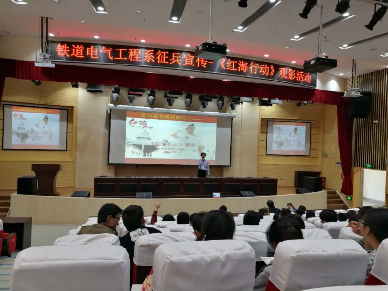 2018年5月4日中午1点我系组织全体同学于图书馆报告厅观看了爱国励志电影《红海行动》。